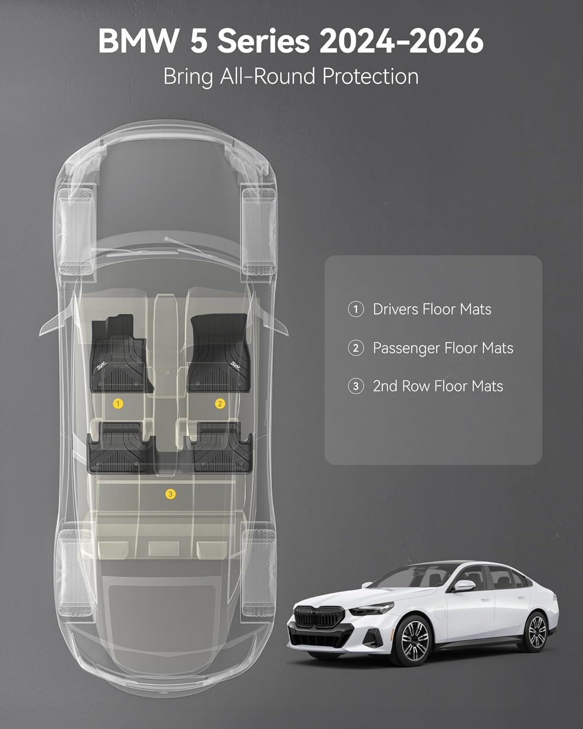 استخدمنا تقنية المسح الضوئي للسيارة الحقيقية ثلاثية الأبعاد المتقدمة لالتقاط كل زاوية ومحيط لتصميم دواسات الأرضية المخصصة التي تناسب سيارة بي أم دابليو الفئة الخامسة 2024-2026. دواسات الأرضية ذات التغطية الكاملة كبيرة بما يكفي للحفاظ على الثلج والمطر والطين من السجاد الداخلي. إنه جيد لاحتواء الفوضى الناتجة عن الأحذية المبللة أو المتسخة، مهما كانت خطواتك.