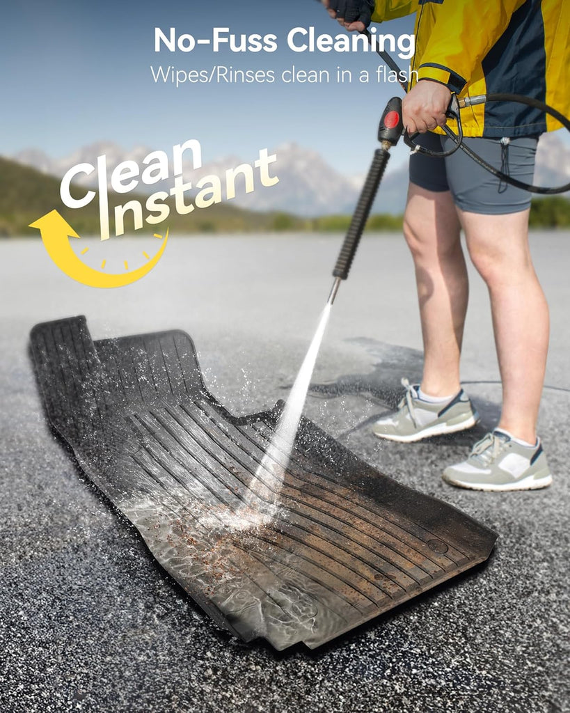 Low-density flexible TPE material is easy to clean and install. After hosing and drying with a dry towel, all the dirt will be removed, no matter with mud, slush, or dust on the liners. The liners will look brand new again