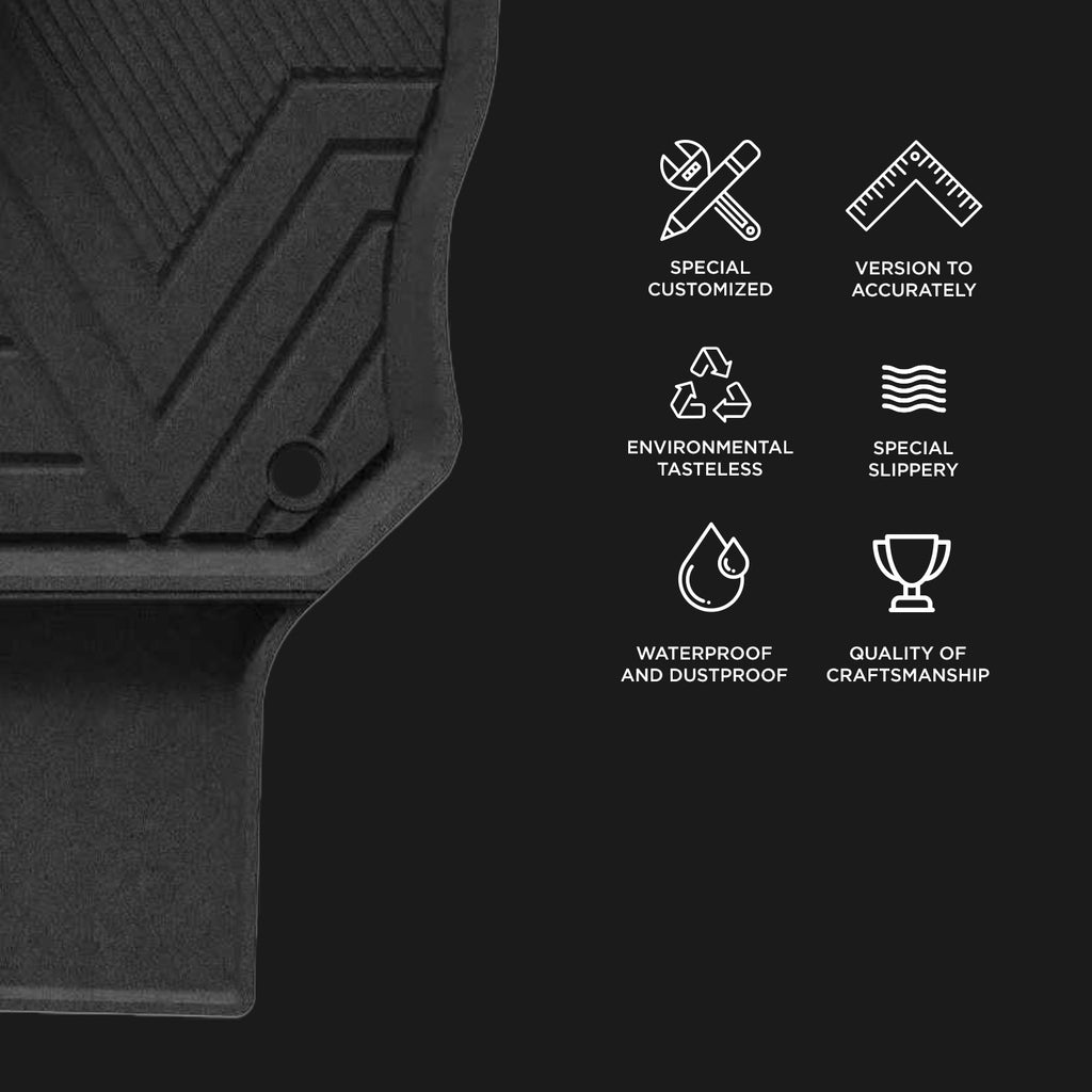 Adrian floor liners are made from 100% Brand-new Thermoplastic Elastomer (TPE), which is extremely elastic and wearable. It has a comfortable feeling of feet, prevent accidental skidding even when your feet are wet. The unique groove design also increases the friction of the mat, maintaining excellent durability even with prolonged use