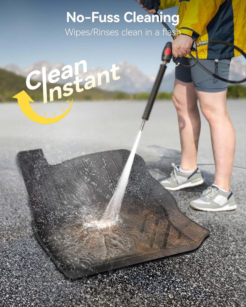 Low-density flexible TPE material is easy to clean and install. After hosing and drying with a dry towel, all the dirt will be removed, no matter with mud, slush, or dust on the liners. The liners will look brand new again