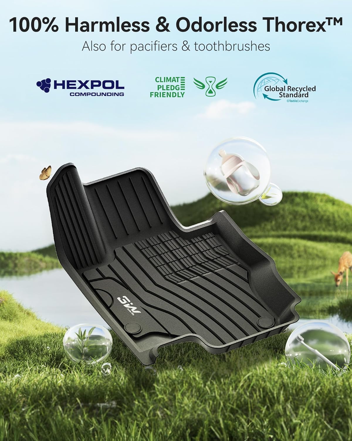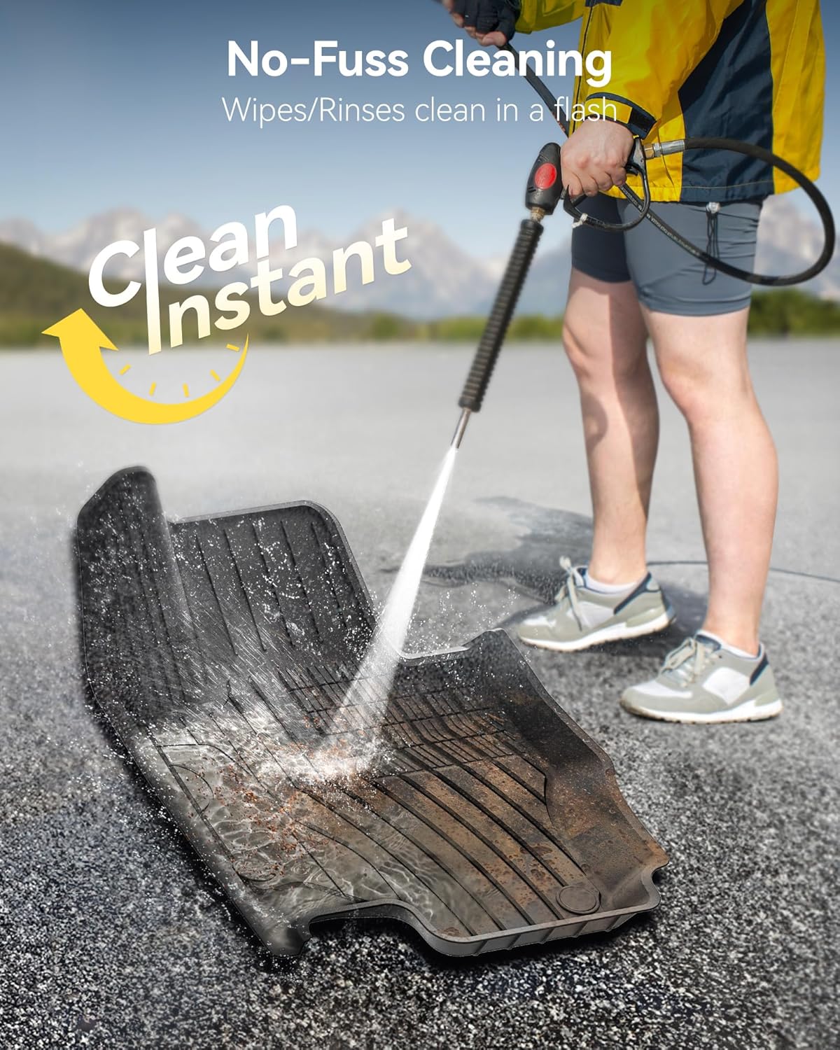 Low-density flexible TPE material is easy to clean and install. After hosing and drying with a dry towel, all the dirt will be removed, no matter with mud, slush, or dust on the liners. The liners will look brand new again